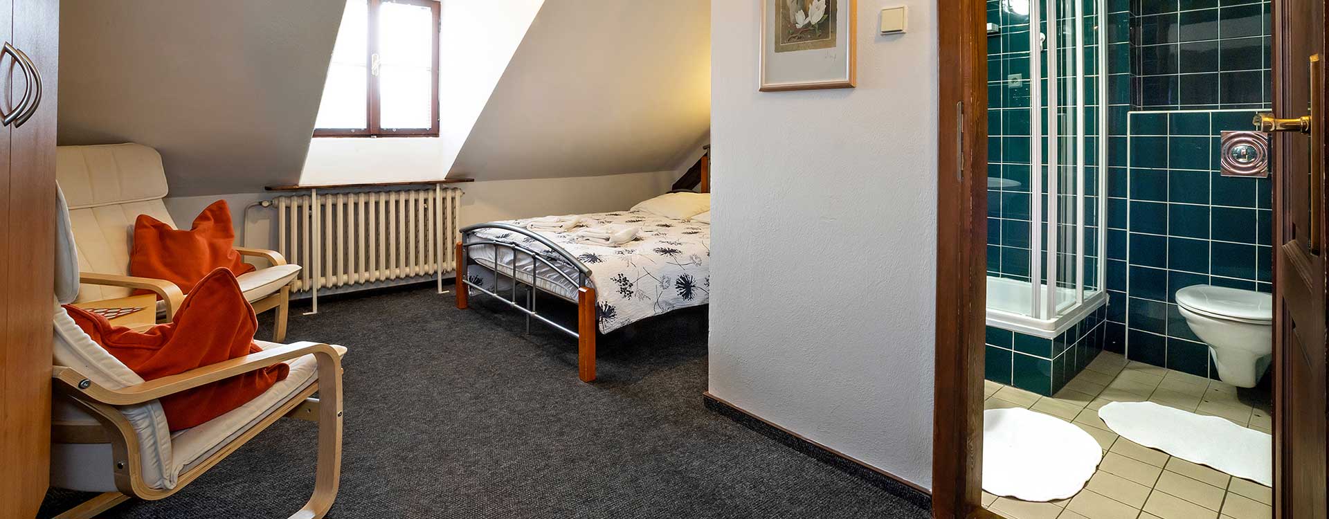 We have prepared accommodations for you in Český Krumlov in rooms with bathroom, toilet, TV, and internet connection. The total capacity of Pension Landauer is 15 beds. Have a look at our Landauer Pension prices.